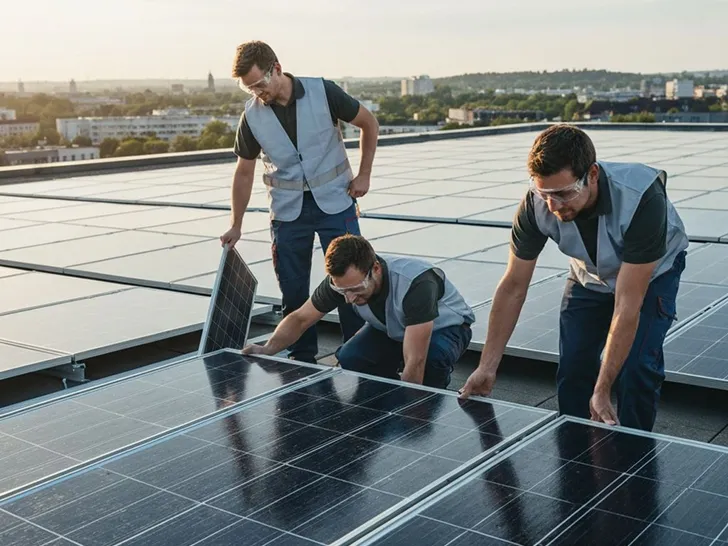 Unser eingespieltes Montageteam installiert die Module sicher und fachgerecht auf Ihrem Dach.